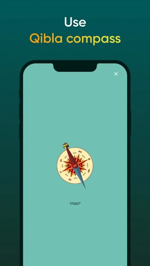 1. Compact and handy Qiblah compass, showing with an arrow the direction of Kaaba in Mecca.