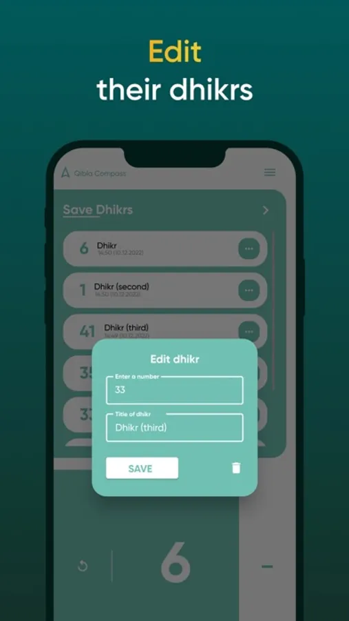 5. Ability to edit any Zikr, counter number and name