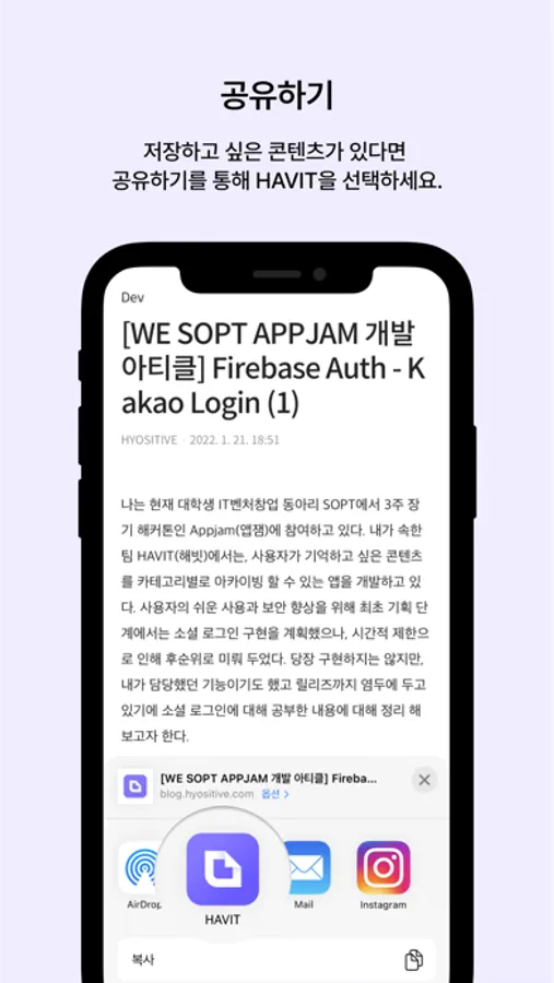 저장하고 싶은 콘텐츠가 있다면 공유하기를 통해 HAVIT을 선택하세요.