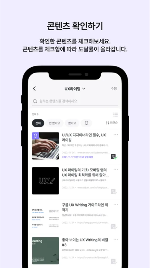 콘텐츠를 잊지 않도록 알림 설정을 해보세요!