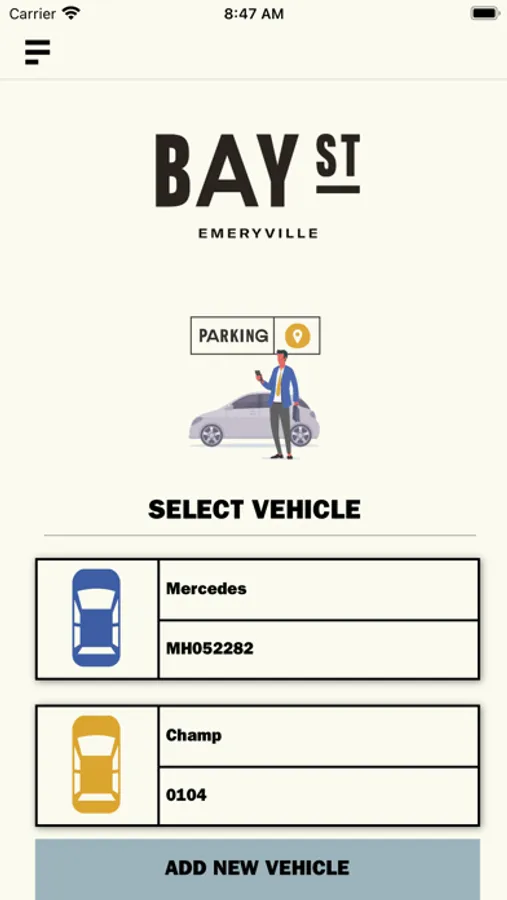 To make it as easy as possible, download the secure app in advance and enter your license plate number and credit card information. (You can even enter multiple vehicles.) Then, the whole process is as simple as 1-2-3.