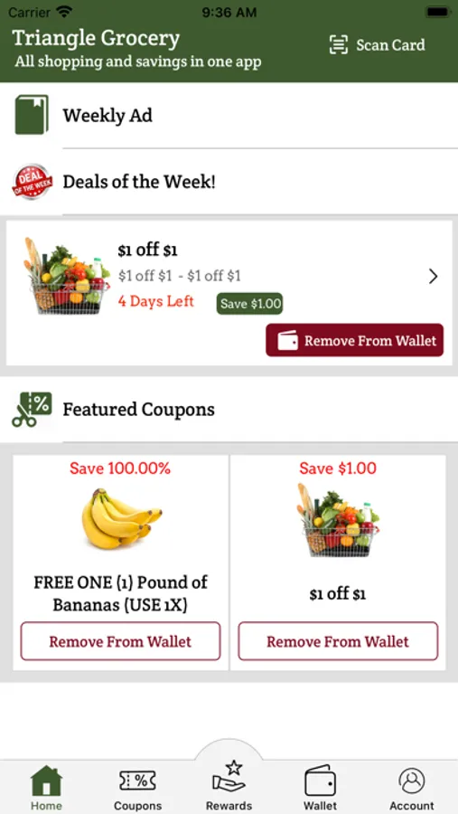 With the Triangle Grocery App you can claim as many specials and digital coupons as you want. No more searching through newspapers or printing out emails, with the Triangle Grocery App it brings all the rewards to your mobile device!