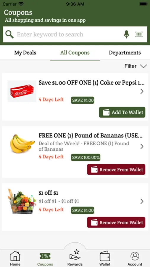Add digital coupons and other specials to your list, and