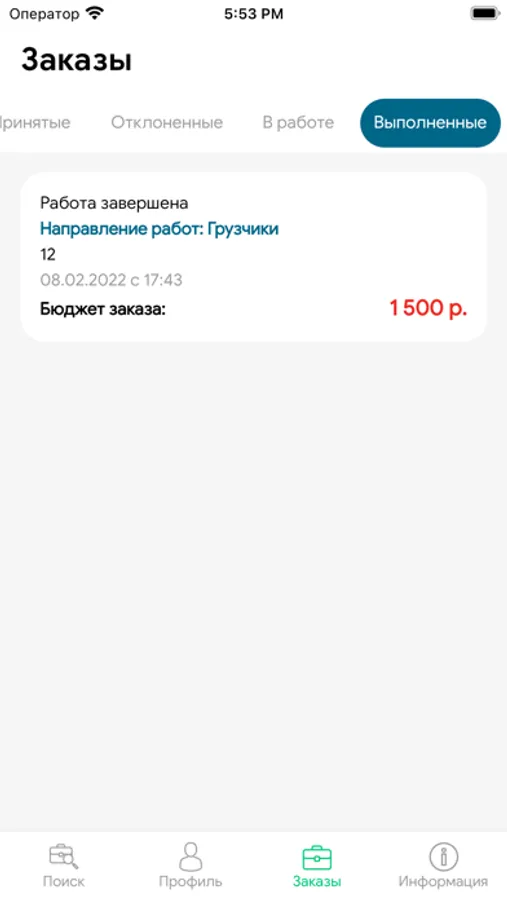 - Оформите заказ на работы со всеми критериями, место, кол-во людей и т.д.