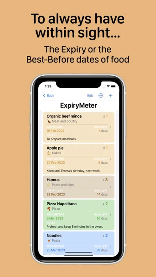 • EXPIRYMETER: To keep under control the Expiration or the Best-Before dates of the food you have at home.