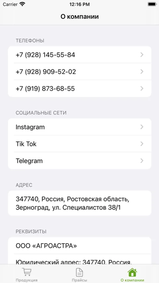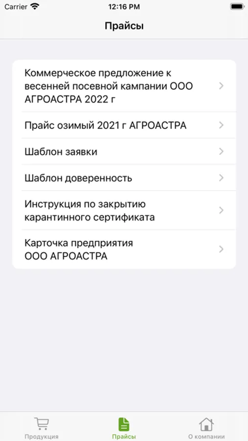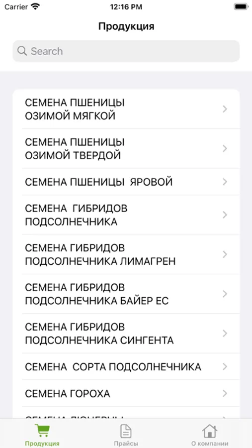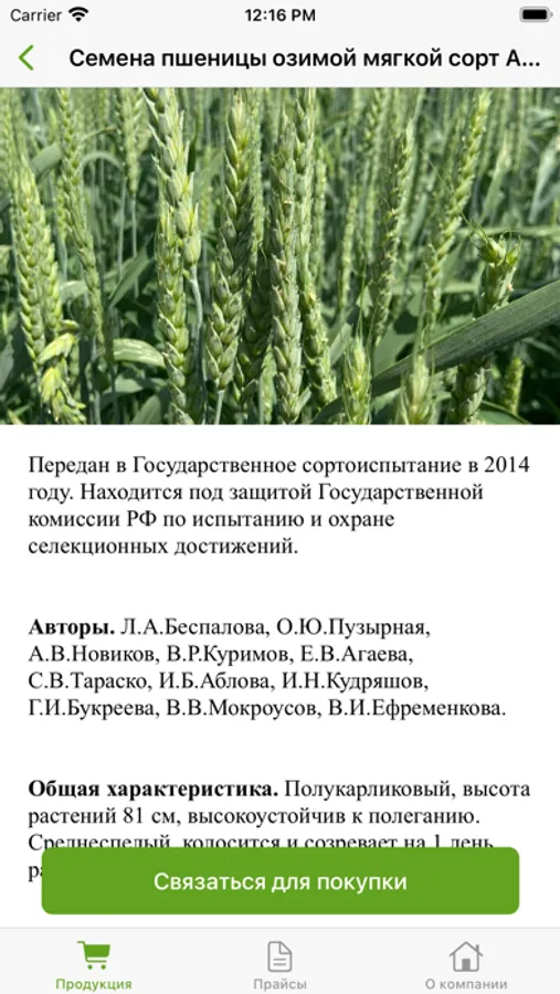 В данном приложении реализована возможность видеть покупателям семян актуальные цены, культуры и сорта представленные на реализацию.
