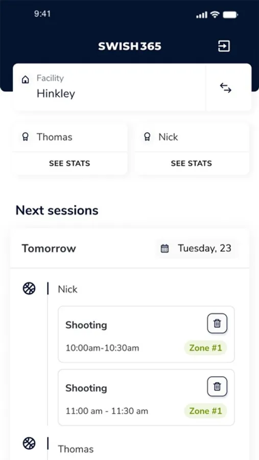 - Keep track of your kids upcoming sessions through your Dashboard or Full Schedule view