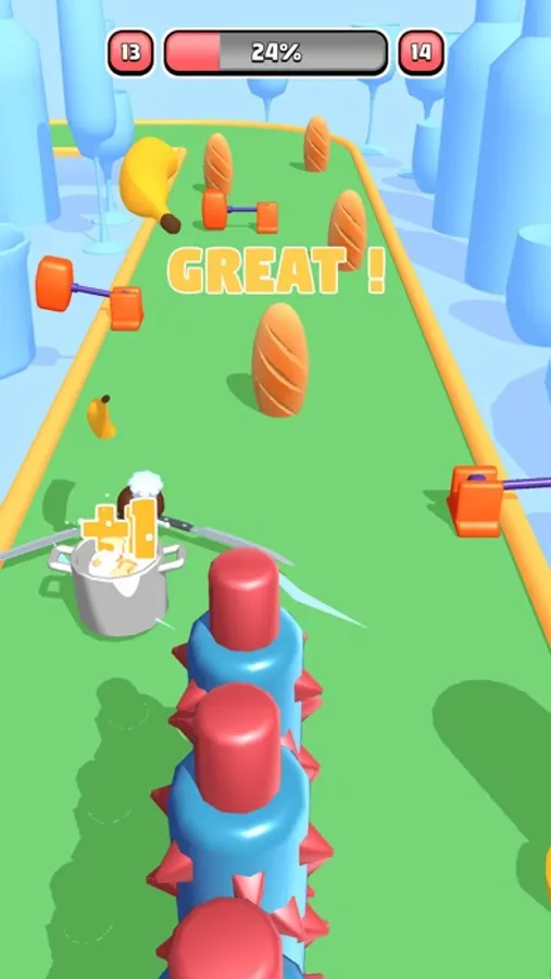 Use your knife to cut and slice the food that you will find! But beware of the obstacles!