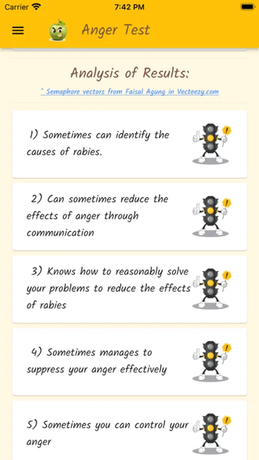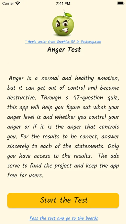 Anger is a normal and healthy emotion, but it can get out of control and become destructive. Through a questionnaire, this app will help you find out what your anger level is, if you control your anger, or if anger controls you.