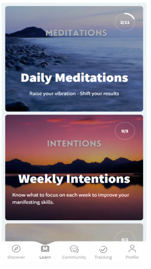 Track your daily meditations to reach personal goals and steadily raise your vibration to match the level of success you want in your business.