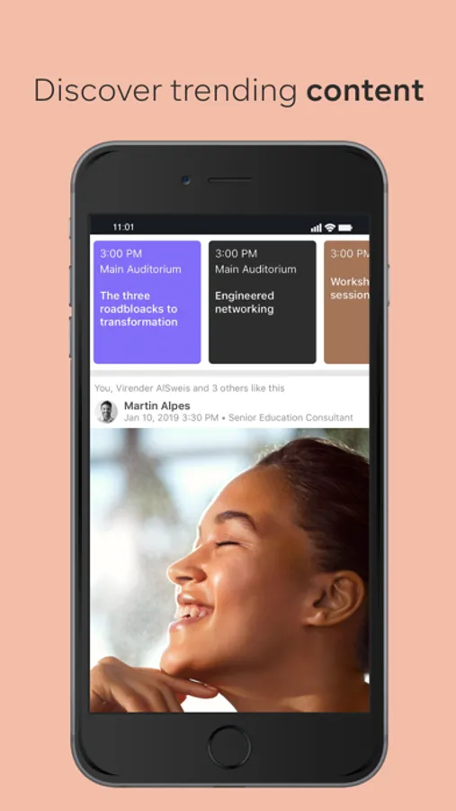 - Networking: instant messaging with delegates, exchange of digital business cards, access to attendee lists.