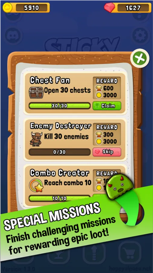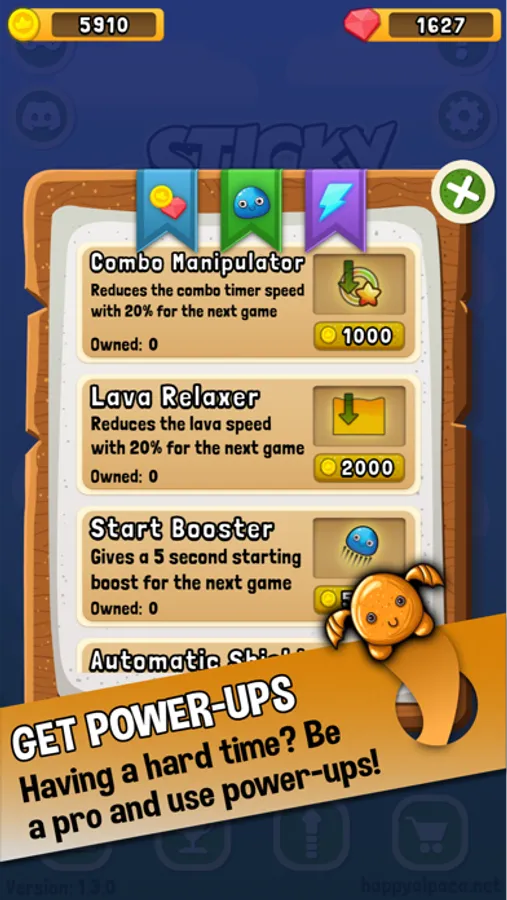 Sticky Castle is an exciting fast paced action game, that is easy to control, but definitely very, very hard to master. Help your slimy and sticky friends to rescue the Queen of Stickiness. Use your strategy and timing skills to perform incredible stunts, avoid dangerous hazards, defeat enemies, complete missions and just be epic. Do you have what it takes to reach the top?