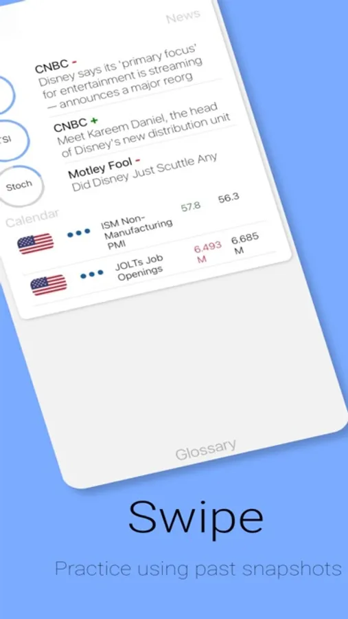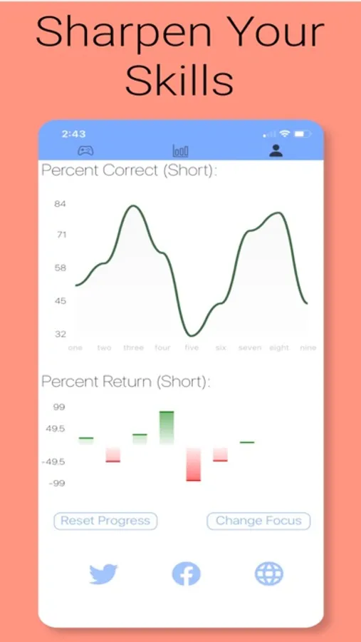 As you progress through the levels, and improve as a trader, you can see your simulated returns and accuracy improve! When you feel ready, use our live market data to apply what you learned during practice and find your next big opportunity!