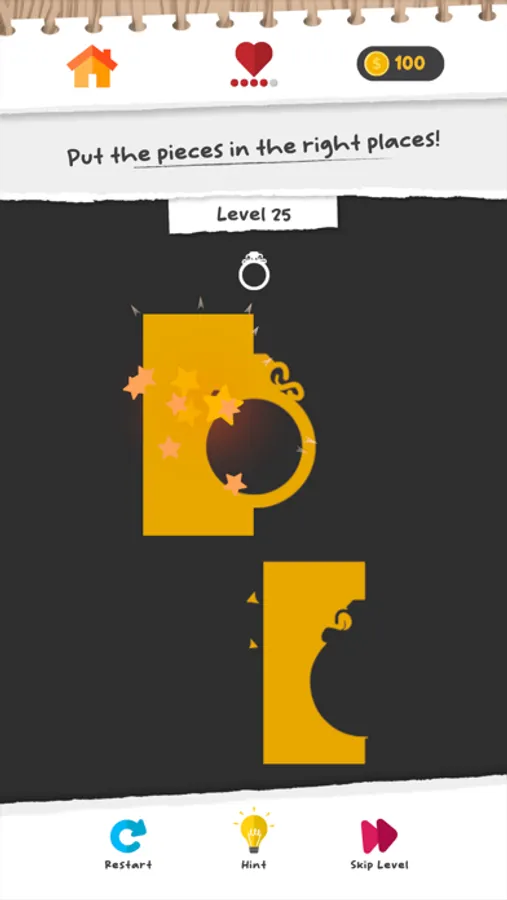 Each stage has a unique problem to solve. Redraw an object, cut out a silhouette, or find a hidden clue.