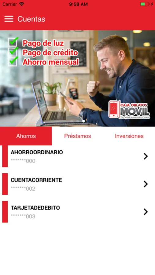 Realiza tu operaciones con tus cuentas de ahorro y prestamo.