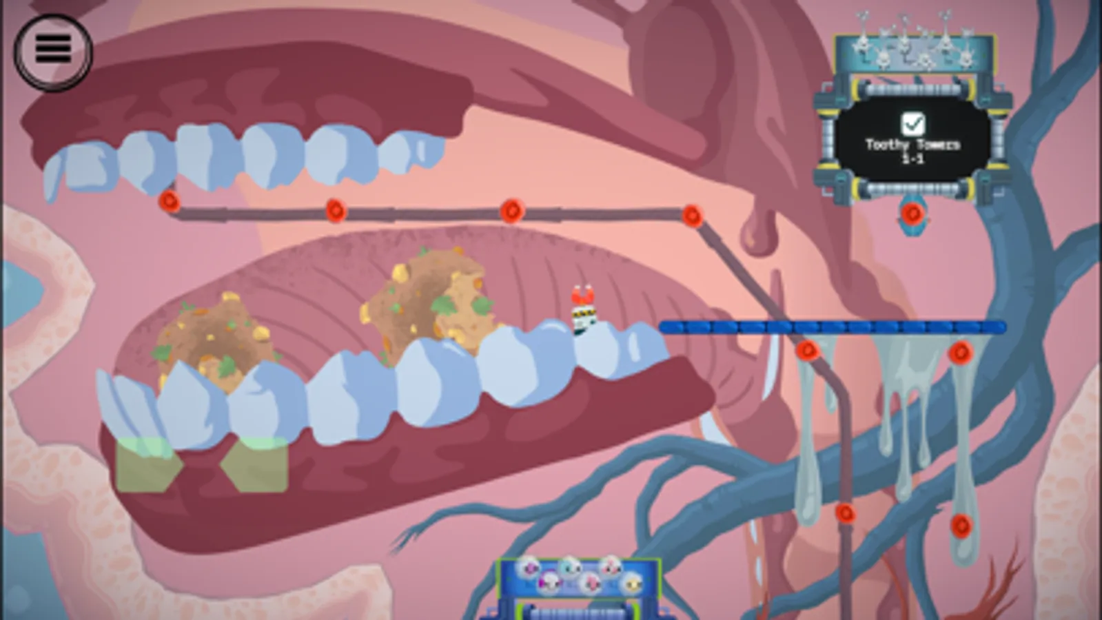 Chip still moves side-to-side, grapples to anchor points, and then launches off of them – in addition, Chip learns! To clean out the insides, Chip must build understanding on the escalating complexity of the digestive system’s parts and functions. You’ll build a truly masterful degree of knowledge and dexterity through the digestive system.
