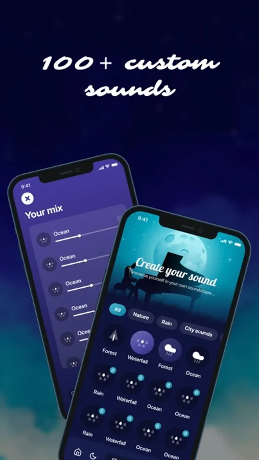 * 100+ customisable background music and sleep sounds: create your own the perfect sleep environment