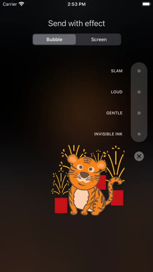 Send them in Bubble mode or Screen mode with echo effects for more fun. Dark mode friendly.
