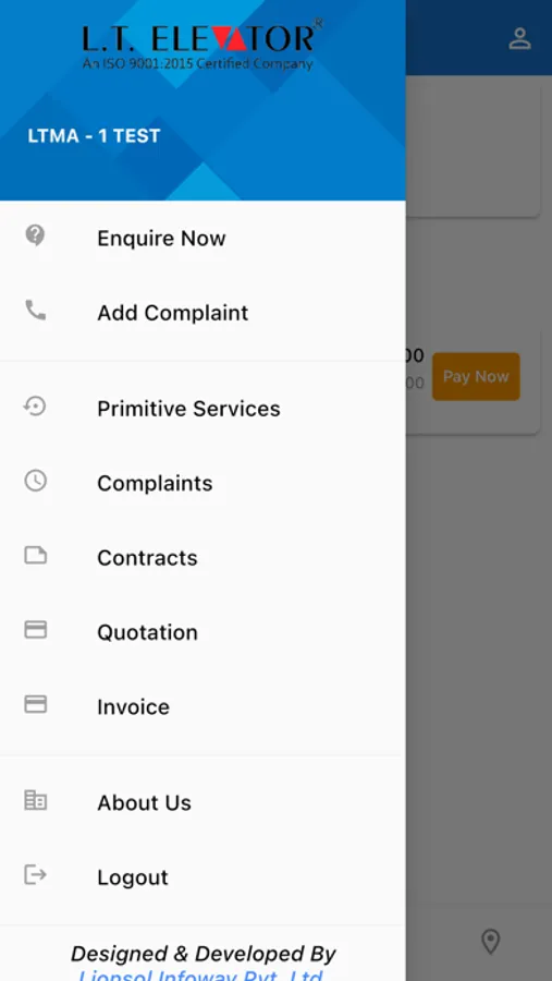 Manage AMC, Payments, Bills, Request Quotations for Elevators. And Create Logins.