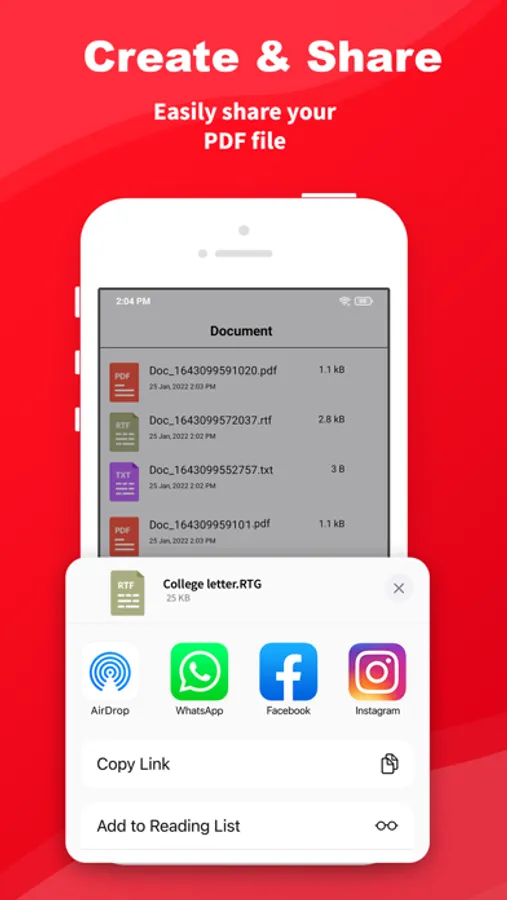 Send and share converted files easily via social media applications, Bluetooth, e-mail etc.