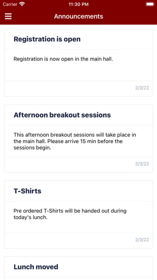 PYLI Events Screenshots