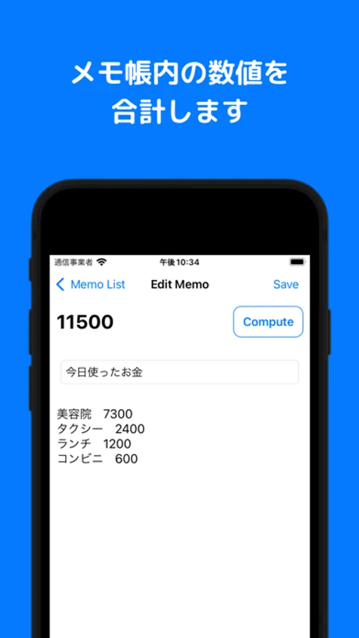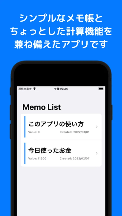 シンプルなメモ帳と、ちょっとした計算機能を兼ね備えたアプリです。