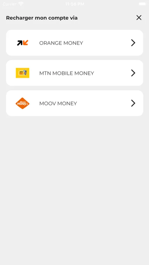 - Rechargement via Orange Money, Mtn Momo ou Moov Flooz