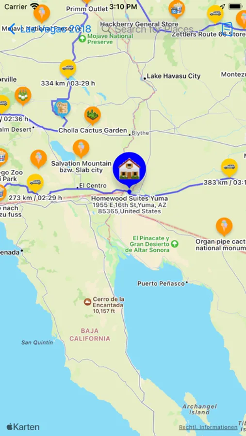 * Full Map integration: Display and search of POIs, hotels, routes, etc. and transfer the address to your items (hotels, etc.)