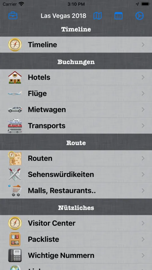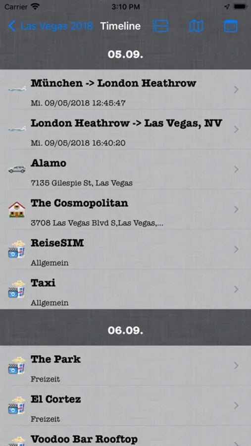 * Document Manager which links your documents to your booking items (see your booking confirmation directl for the hotels, flights, etc)