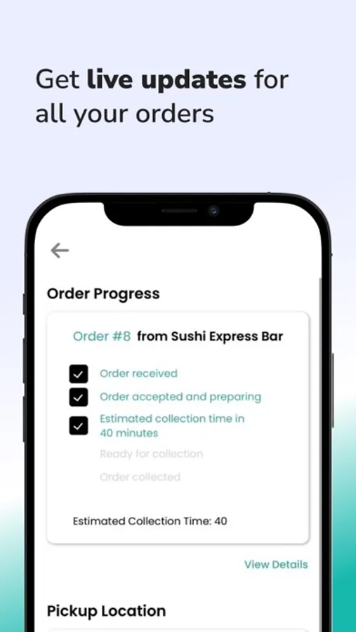 If you are sitting at the venue a waiter will serve your order at the table number you entered during ordering. If your order is for pickup, the app will notify you on the estimated collection time and when your order is ready to collect.