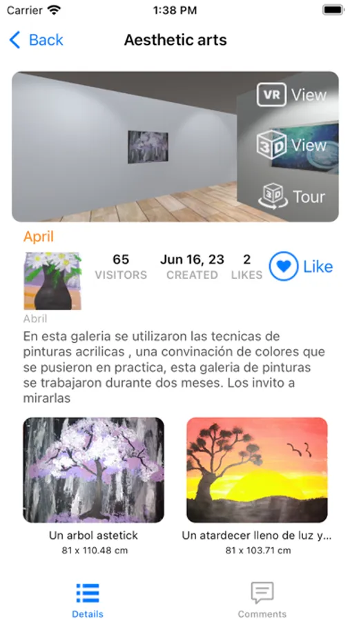Arte is an app to create virtual art exhibitions. Present your artworks as a 3D exhibition and share them over the internet. Visitors can use a browser or mobile phone to view.. View as 3D or 360° lifesize using a smartphone-based VR Headset.