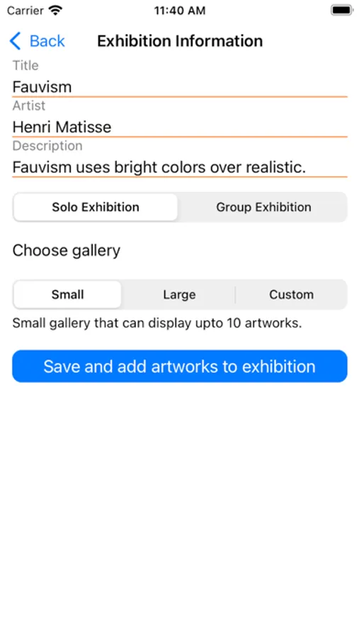 A virtual tour is a quick way of viewing all the artworks on display without the navigation system. During the guided tour, artwork information appears on the corner of the screen. Use iPhone screen recording features to save the sequence as a video.