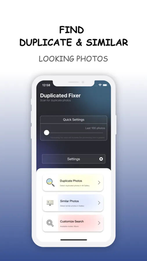 Duplicate Fixer - Photos like a charm and has the ability to detect duplicate and similar photos.