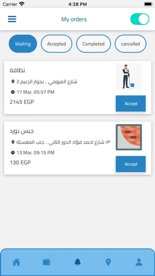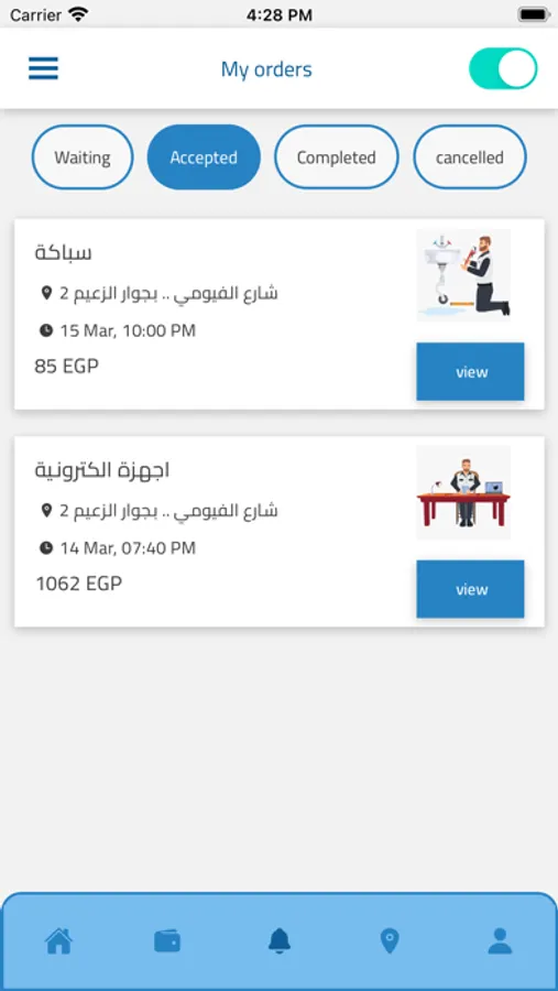 Tarteb app is a service platform specialized in all mediation work between the customer and the service provider in all areas of maintenance, design, decoration, electronics and other areas left