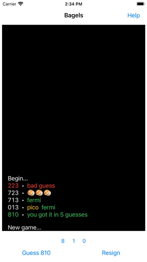 Bagels Pico Fermi is a number guessing game where you have to guess the correct three digits and in the correct order. You're given clues about the digits you guess: none right, all right, correct digit in the right position, correct digit in the wrong position.