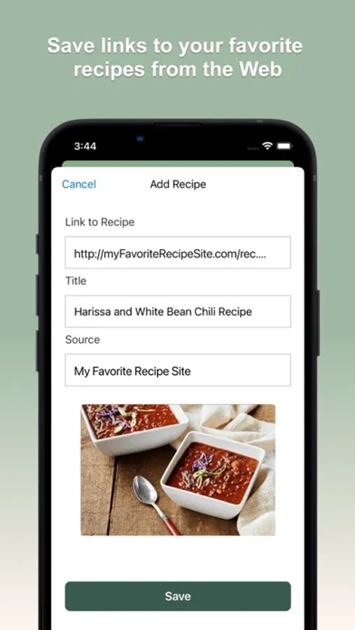 • Save recipe links from any website. Automatically import recipe name, image, and website details for quick entry.