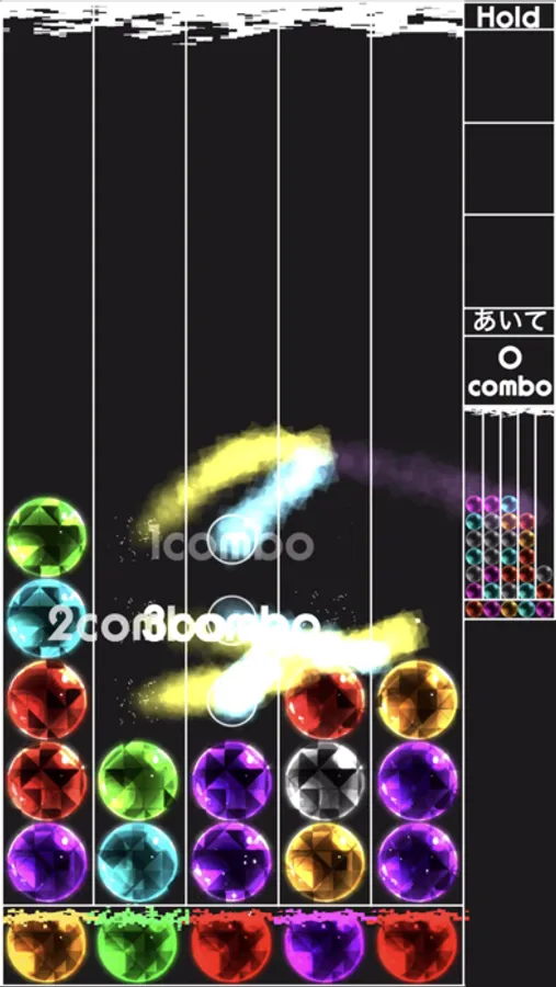5つあるうちのどれかのレーンをタップすることで最大3つまでボールを持つことができる。