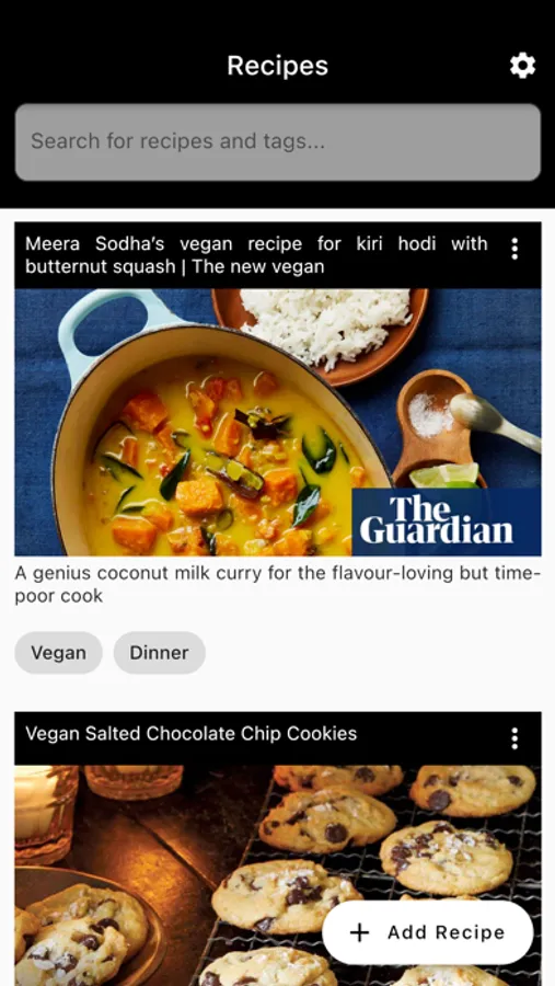 Soh-Té is an app that helps you manage and store your recipes from across the web. Save links to recipes, tag them, search them, leave notes on them, and view them all right in the app.
