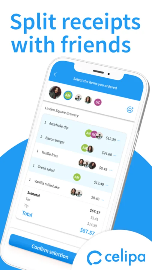 “So how do we split the check?” Evenly? One pays the total, the other pays the tip? I’ve got this one, you get the next one? At Celipa, we believe there’s only one way to split the bill: only pay for what you ordered. Nothing more, nothing less.