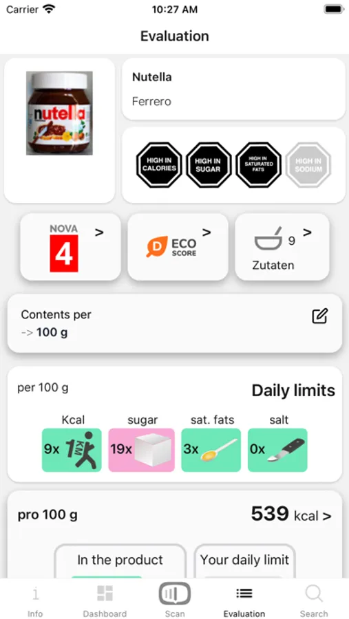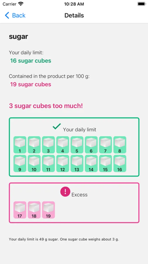 We warn you if you exceed your daily amount of sugar, fat or salt.