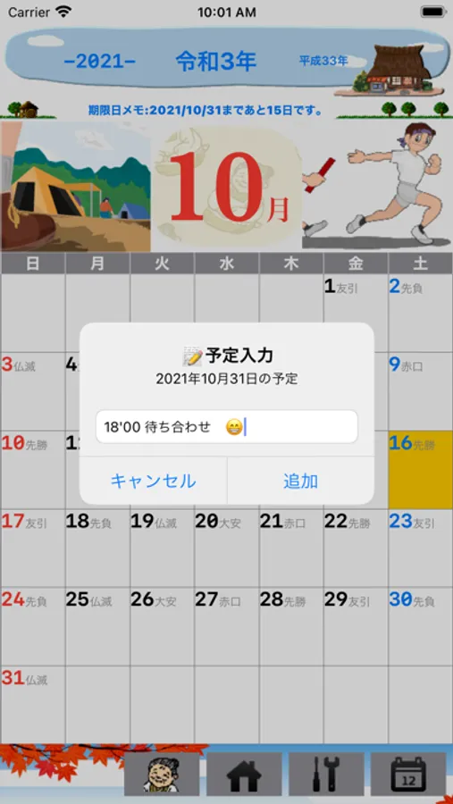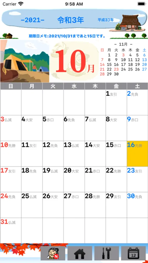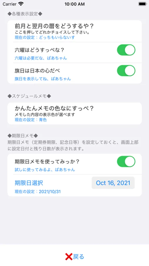 ・期限日メモ機能(登録すると残り日数が画面上部に表示されます)