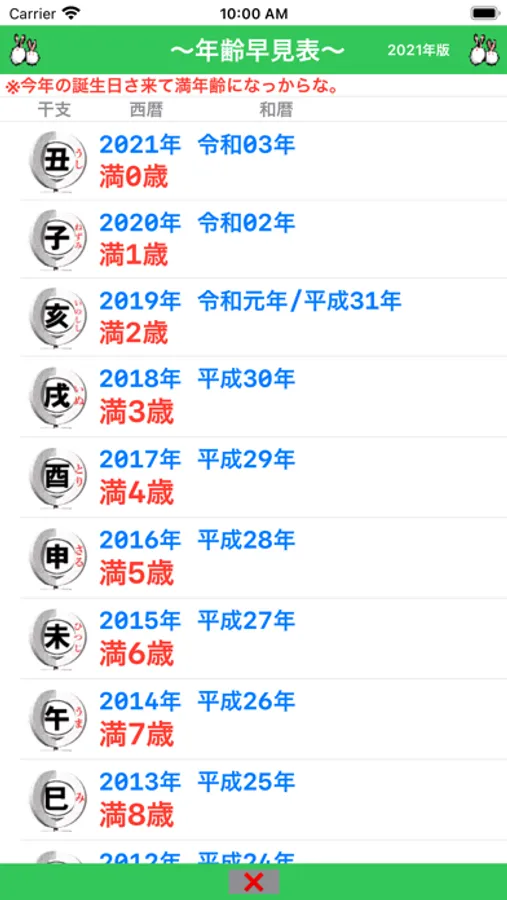 ・画面上部の『和暦年』タップでその年の干支が表示されます。
