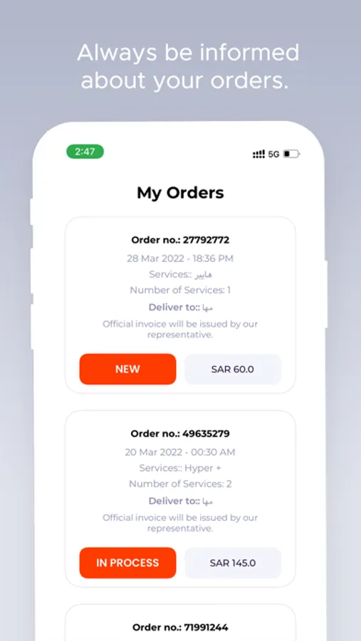 Get ready to make your shoes shiny again! Freshoe provides a user-friendly app that allows you to easily submit and track your orders.