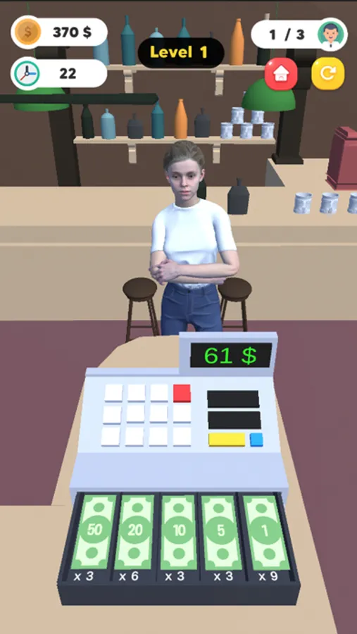 Cashier Money Bank Simulator is an exciting cashier game which is quite an educational game for boys & girls equally. Cashiers who want to spend a busy day in the shopping mall supermarket and have fun at the cash register. Learn time management and cash handling in supermarket shopping scenarios behind front desk. Play as a cashier pro in the city shopping mall, you can learn how to handle money and count cash. Improve basic skills in mathematics such as addition and subtraction while having fun working at a cash register dealing customers.