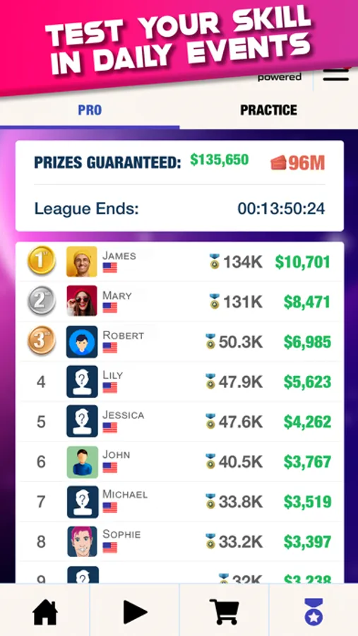 - Fight for cool prizes in professional league with experienced players, when you feel sure in your skills.
