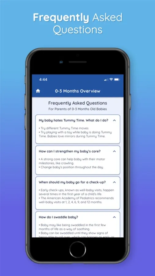 Baby Steps is a Baby Development, Baby Exercises & Activities App for 0-6 years old. This app provides new parents with baby milestone tracking, ability tracking, self-paced videos, training resources, and FAQs for the baby's sensory and motor skills development.