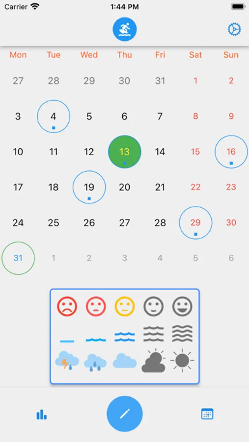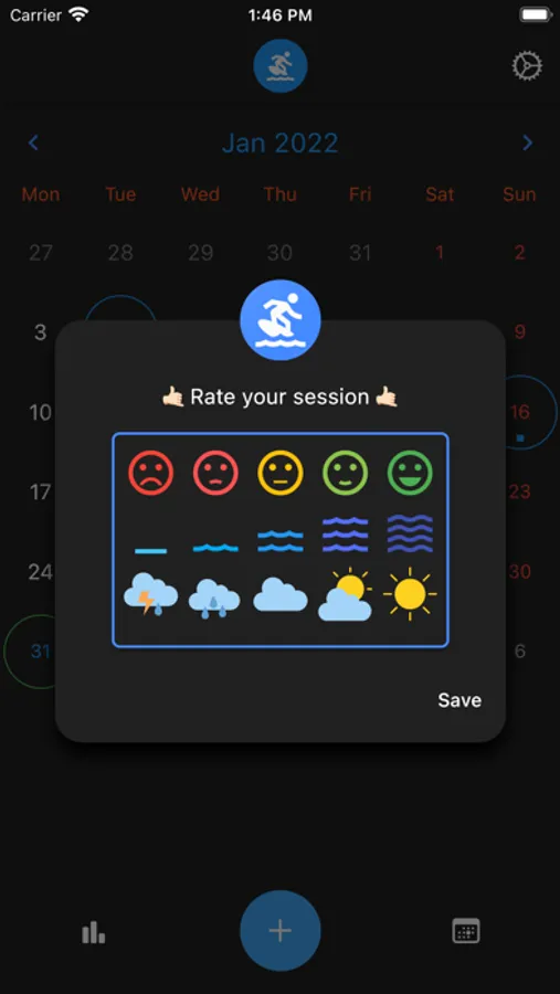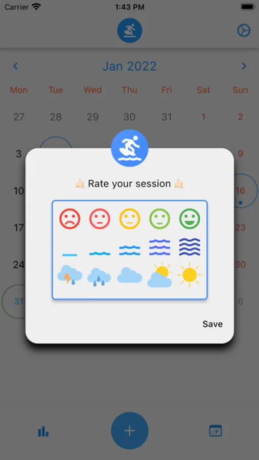 You can count your surf sessions and rate them by: