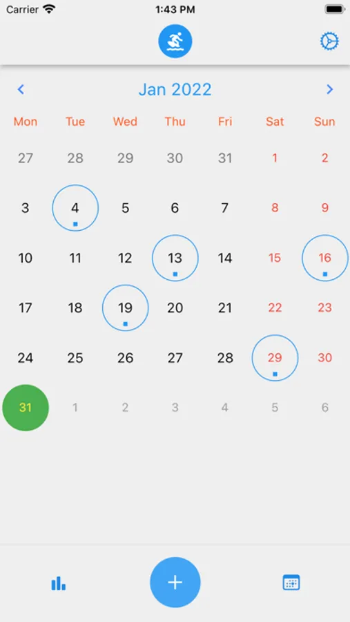 In this way you can create your surf diary to keep track of your surf sessions and count them at the end of the year.