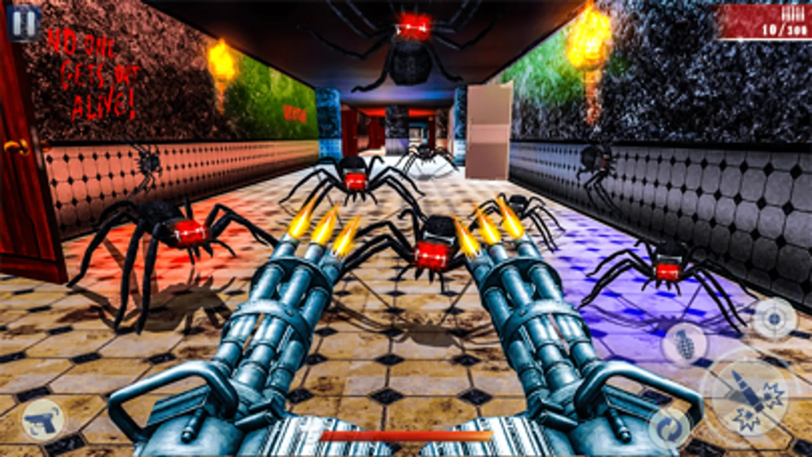Johnny mind trigger and start feeling little hope of survival, John mind trigger and he start hide n seek games with giant spider to find human if there is any human left or survive from those Monster Spiders he will get fellow man to kill giant spiders and be a spider shooter man and hunt this deadly creature in a deadpool of spider nest Island full of these monster evolution creatures. While searching for humans he finds out a heavy machine Gun.
