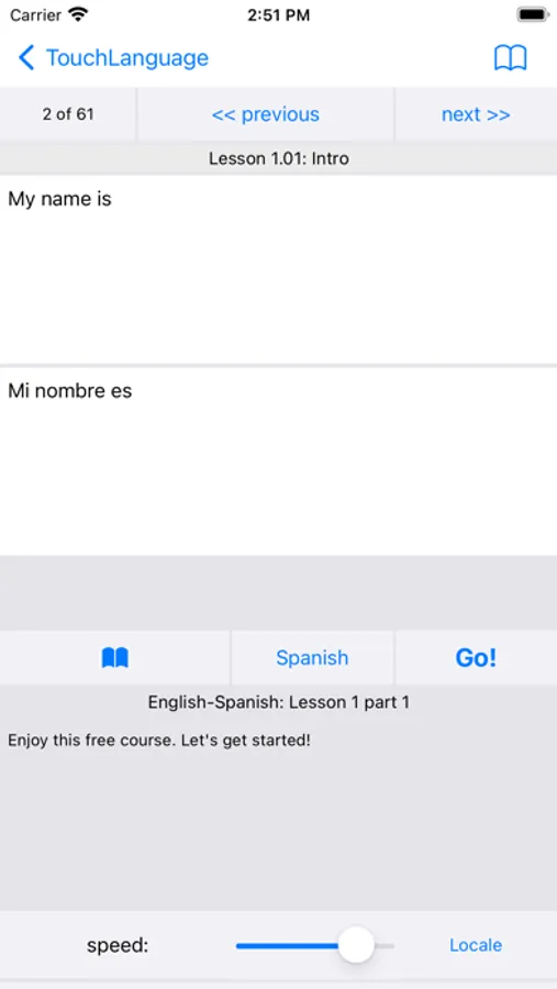 TouchLanguage - Spanish: Helps you quickly and effectively learn a guidebook of over 1000 of the most used Spanish words & phrases using innovative interactive visual/audio games. This guidebook is stand-alone & requires no Internet connection to access its database. Take with you on the go and play and learn quickly and effectively. Each of the drills and games has dozens of variations for 1000s of combinations to keep you excited and engaged in your learning. Do drills on over different categories and configure your own games to optimize your learning, by touching the correct images and words.